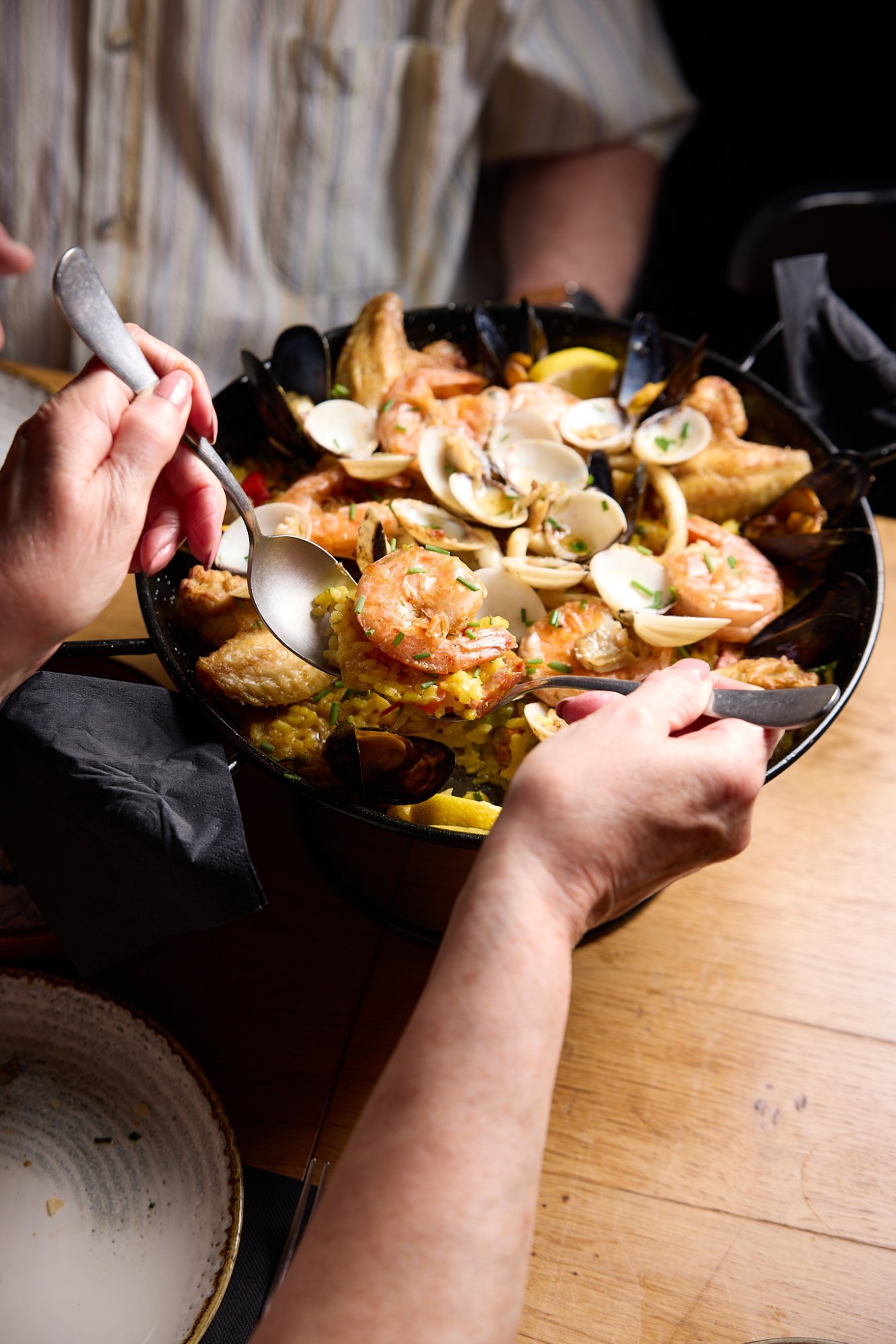 1ste gang Plankje van fijne vleeswaren, kazen en garnituren, brood met aioli 2de gang Paella mixta met chorizo, kip, scampi’s, inktvis, venusschelpen en mosselen (MENU ENKEL PER TAFEL & MIN 2P) |