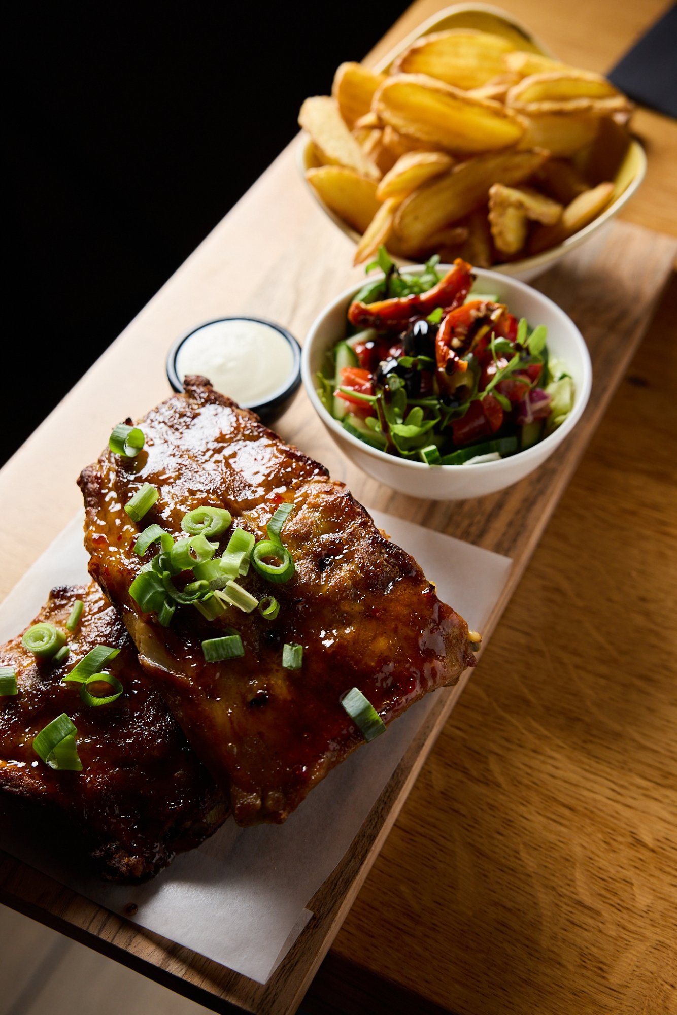 Heerlijk huis gemarineerde spareribs met 2 sausjes en patatjes |